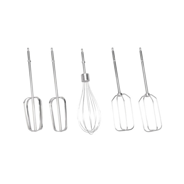 - Completo set de accesorios: batidores tradicionales, gancho de masa y batidor globo.