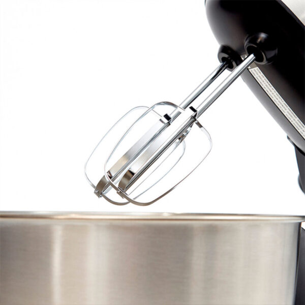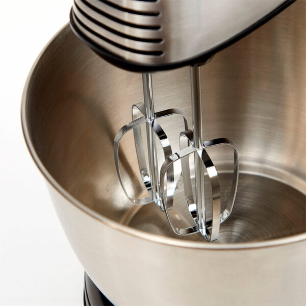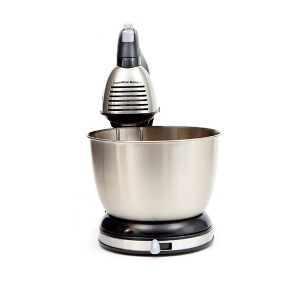 La batidora Hamilton Beach de 290 W funciona tanto como pedestal como de forma manual cuando se desacopla. Cuenta con un control de 6 velocidades con botón Quickburst™ que aumenta la potencia de la batidora, botón para eyección de batidores, bowl de acero inoxidable de 3,8L y plataforma giratoria, palanca para el control del tazón, y botón para inclinación del pedestal. Además, incorpora un completo set de accesorios: batidores tradicionales, gancho de masa y batidor globo.