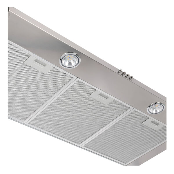 Cuenta con 3 niveles de velocidad, una capacidad de extracción de 493 m³/h y 145 watts de potencia, que garantizan un ambiente fresco y limpio, incluso durante las preparaciones más intensas, como la comida frita.