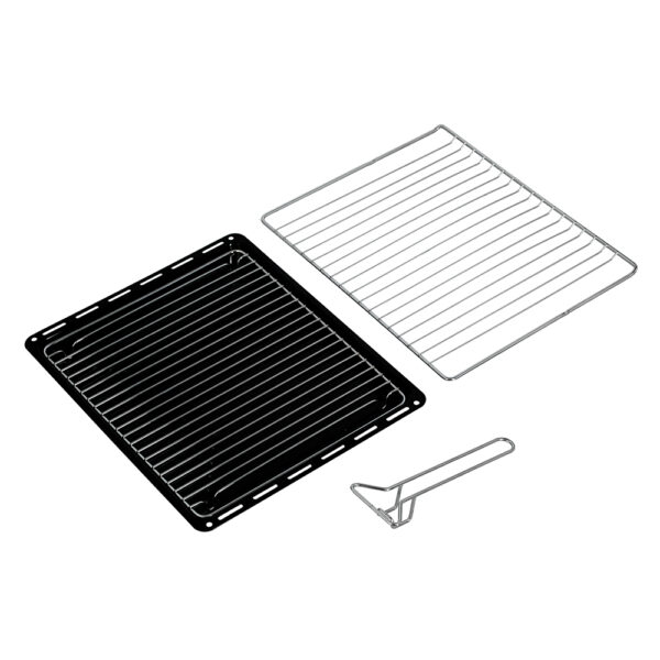 - 1 rejilla, 1 bandeja, 1 rejilla bandeja, 1 asa para tomar parrillas y bandejas.