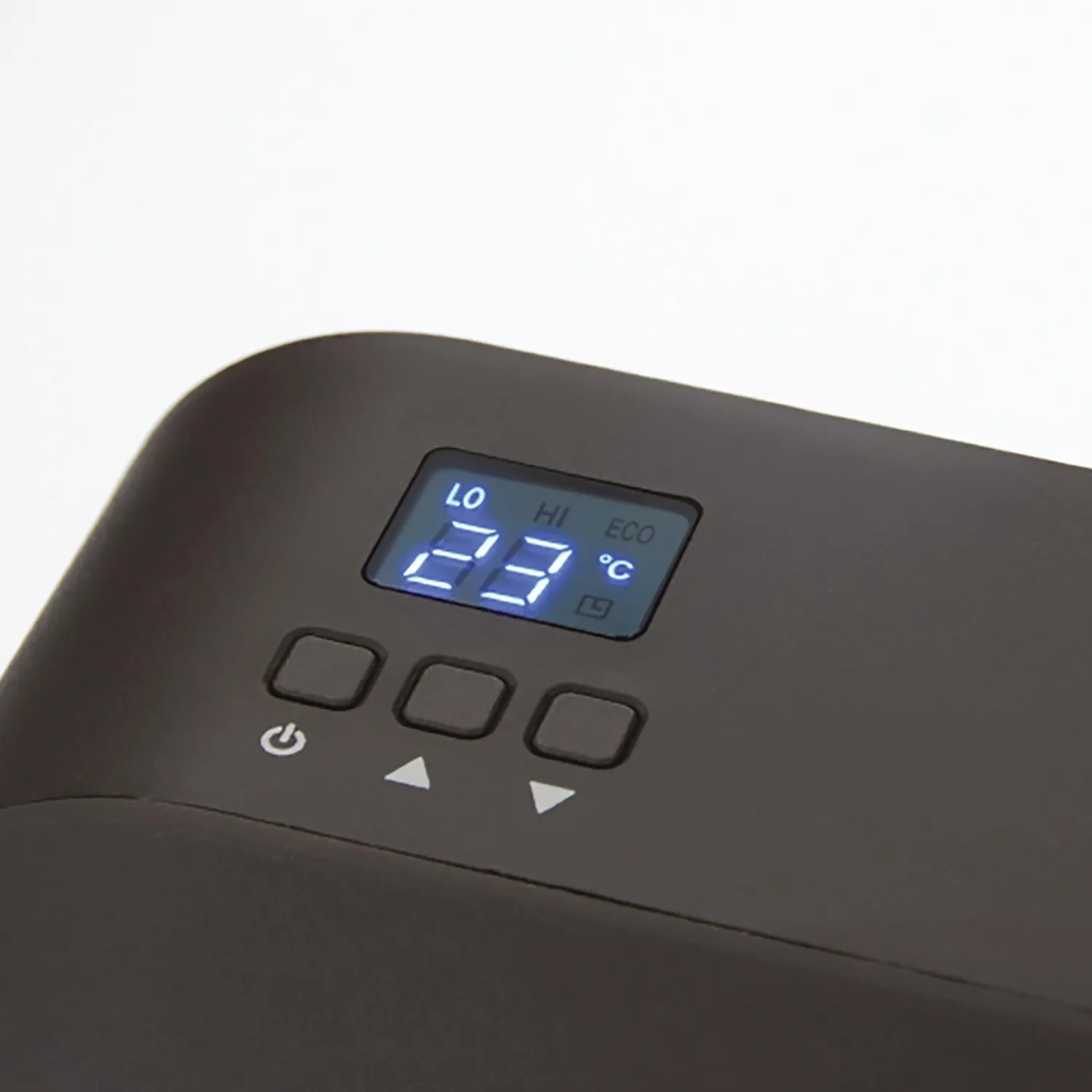 Este termoventilador cuenta con un área de cobertura de 20 m2, ideal para calefaccionar espacios medianos. Su termostato digital te permite seleccionar la temperatura deseada, logrando un mayor ahorro de energía. Además, incluye un sensor de movimiento para optimizar su funcionamiento y tiene dos niveles de potencia para ajustar la intensidad del calor según tus necesidades. Su alimentación es eléctrica y tiene un consumo de 1,5 kWh.